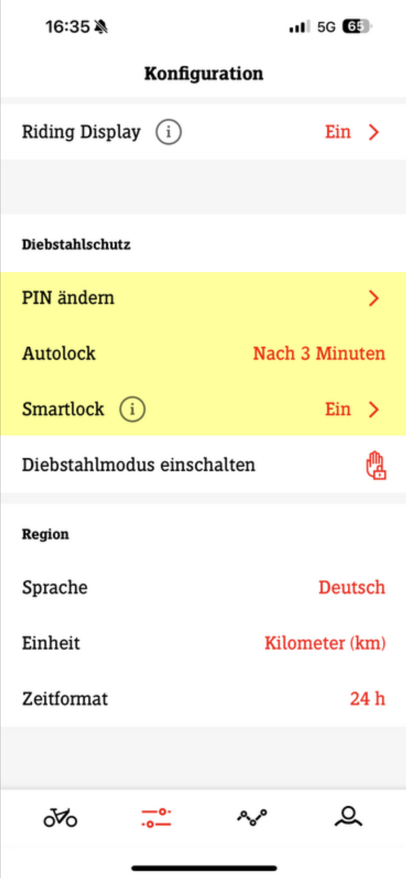 RE: Neue Firmware - Volksbad - 18.03.2025 Die PIN Abfrage kommt nur, wenn das Rad eingeschaltet wird. Oder übersehe ich was? RE: Neue Firmware - ST2-jsg - 18.03.2025 Ich denke ja. Du musst über Omni > Menü > Einstellungen > Startup: gesperrt/entsperrt die Einstellung auf ‚gesperrt‘ haben. Weiter musst du Smartlock auf ‚Ein‘ stellen damit der Stromer nicht nur in den Standby geht sondern dieser nur über den PIN oder Bluetooth beim aufwachen auch wieder entsperrt werden kann. Das Omni-Flussdiagramm findest du hier. RE: Neue Firmware - Volksbad - 18.03.2025 Ja gut, aber das Ergebnis ist doch das gleiche. Wenn der Dieb wegfahren will, muss er den PIN eingeben. Wegtragen geht in beiden Fällen. RE: Neue Firmware - maho - 18.03.2025 Kann das Update auf das Rad irgendwie "gepushed" werden? RE: Neue Firmware - ST2-jsg - 18.03.2025 (18.03.2025, 19:12)maho schrieb: Kann das Update auf das Rad irgendwie "gepushed" werden? Du kannst deinen Händler oder Stromer anfragen. Selber hast du dazu keine Möglichkeit. RE: Neue Firmware - olfener - 18.03.2025 Früher konnte man zu einem Ort mit gutem Mobilfunk-Empfang fahren, den technischen Support bei Stromer anrufen und die haben das Update direkt gestartet. Diese Zeiten sind leider vorbei. RE: Neue Firmware - ST2-jsg - 18.03.2025 (18.03.2025, 16:21)Volksbad schrieb: Ja gut, aber das Ergebnis ist doch das gleiche. Wenn der Dieb wegfahren will, muss er den PIN eingeben. Wegtragen geht in beiden Fällen. Wegtragen oder in einen Liefrwagen laden geht immer. Letzteres war beim meinem ST2 passiert. Deshalb ist ein zusätzliches Schloss keine schlechte Idee ;-) Du kannst deinen Stromer so einstellen, dass er nur bei einem Neustart den PIN abfragt. Du kannst aber über die Omni App auch das 'Autolock' einstellen, dann sperrt sich der Stromer - wenn du ihn nicht ausschaltest - nach der eingestellten Zeit automatisch. Weiter kann man noch Smartlock einrichten. Damit ist dann ein automatisches sperren/entsperren mittels einer Bluetoothverbindung zu deinem Mobile möglich. Wählst du in der OmniApp bei Autolock "AUS" geht der Stromer nach 5 Min. in den Standby, kann mittels der Powertaste oder rütteln aufgeweckt und ohne PIN-Eingabe gefahren werden. RE: Neue Firmware - Der Osnabrücker - 20.03.2025 Ich hätte gerne endlich die Automatik bei der Smart.Shift! Habe die an meinem (bio-) Gravelbike und bin total begeistert davon. Nach Strecken, auf denen ich das Rad habe ausrollen lassen (z.B. vor einer engen Kurve), starte ich immer mit der passenden Kadenz. Vorher herunterschalten ist nicht mehr notwendig. So kann auch hoch geschaltet werden, aber in dieser Richtung ist schalten in der Ebene eher umständlich. Bergab ist es wiederum genial... RE: Neue Firmware - Reese - 20.03.2025 Wenn die Funktion solange dauert wie damals der beworbene 2nd Screen dann müssen wir ab jetzt nochmal 2 Jahre warten ... RE: Neue Firmware - berlinmm - 24.03.2025 Bei meinem ST2 ist die Firmware 4.4.3.10 drauf. Heute kam die Anfrage für ein Update für den Controller, habe ich aufgespielt, aber müsste dann da nicht 4.5.0.3 angezeigt werden? |