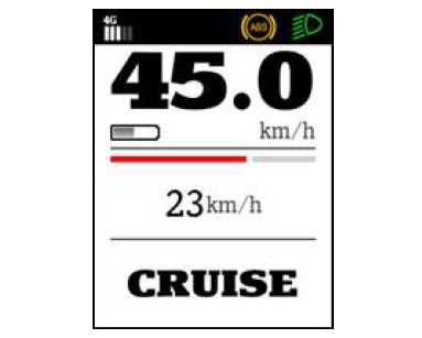 Neu wird das gewünschte Tempo gewählt, welches auch bei wechselndem Gefälle gehalten wird.